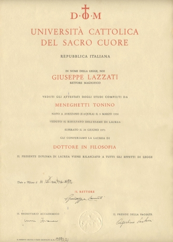 Менегетти получает диплом библиотекаря в Ватикане, который открывал доступ к Ватиканской апостольской библиотеке, где собрана богатейшая коллекция рукописей средневековья и эпохи Возрождения.