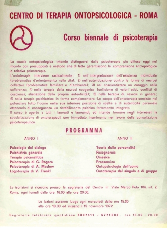 15 ноября 1972 года был открыт Центр онтопсихологической терапии в Риме на ул. Марко Поло, 104, где преподавался годичный курс личностной и практической подготовки по психологии, двухгодичный курс онтопсихологической психотерапии, а позже в 1973 году были организованы трехлетние курсы подготовки психологов и психотерапевтов.