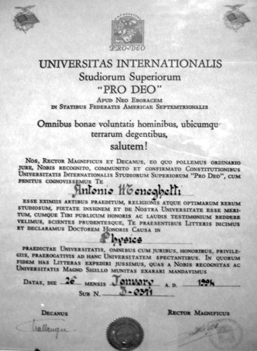 В понедельник, 20 мая 2013 года в 10 утра в г. Фащинал-ду-Сатурно (штат Рио-Гранди-ду-Сул, Бразилия) в возрасте 77 лет ушел из жизни итальянский ученый и художник Антонио Менегетти.