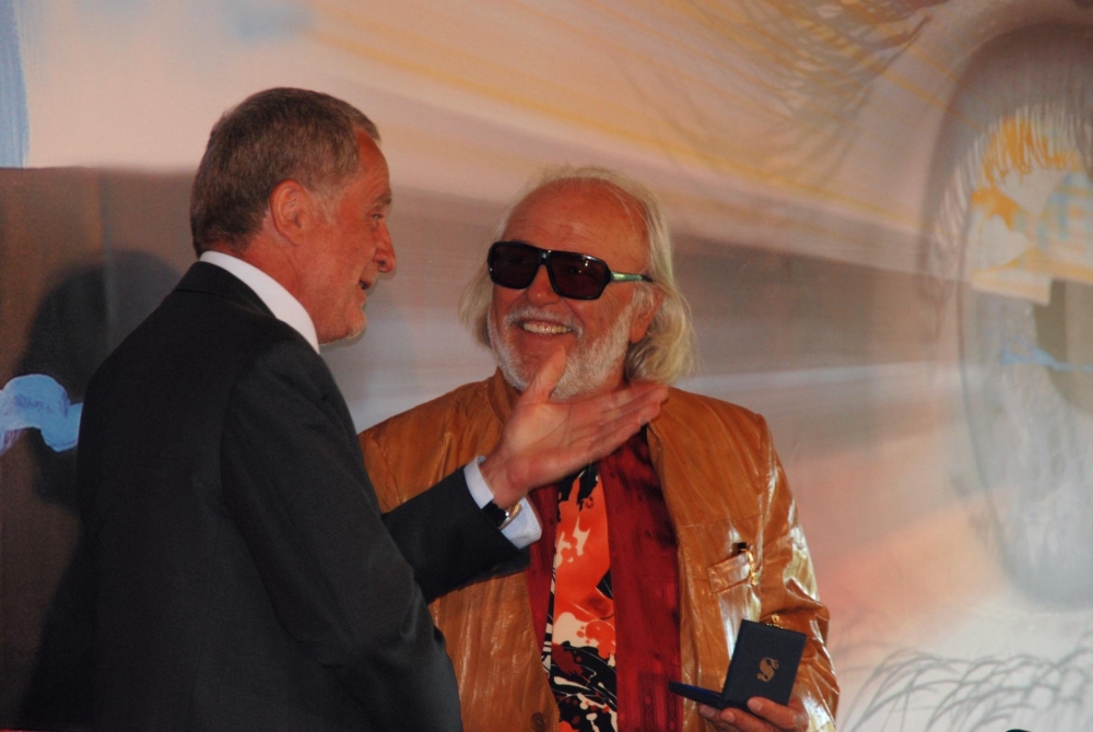 Франко Ашутти от имени Сената Республики Италии вручает проф. Антонио Менегетти медаль за исключительный вклад в науку.
