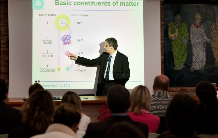 Во второй части конференции профессор Антонио Менегетти представил новый взгляд на развитие ядерной физики, перекликающийся с работами русского ученого Ивана Юзвишина и основанного на информационном подходе в изучении материи.