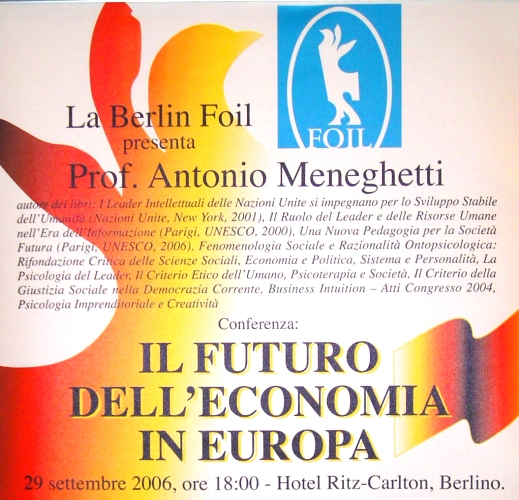 Римский университет Ла Сапиенца приглашает профессора Антонио Менегетти провести заключительную лекцию по теме «Мировая хроника научной теории. Онтопсихология» 4 декабря 2010 года.